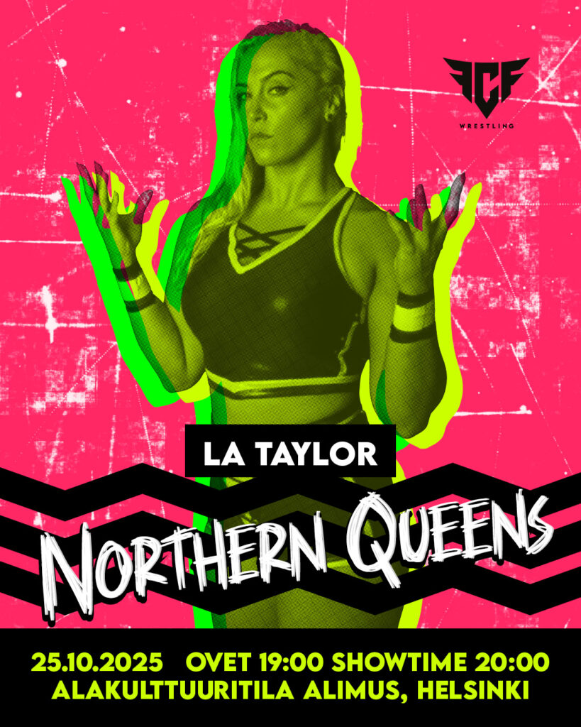Brittitähti LA Taylor saapuu Northern Queensiin! Kuusi vuotta kestäneellä urallaan hän on paininut jo lähes 200 ottelua ympäri Eurooppaa, ja myös Japanissa. Aivan pian Suomi saa kunnian olla kymmenes maa, joka todistaa tämän voimanpesän tositoimia kehässä. “Six Feet of Fury” on lisänimensä mukaisesti näyttävä ilmestys, joka ei vastustajilleen armoa anna. Mestaruuksia raivotar on kahminut sekä yksin että osana tälläkin hetkellä niin Englannissa kuin Espanjassa hallitsevaa “The Experience” -joukkuetta.